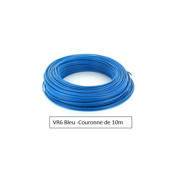 Fil HO7VR 6 mm2 rigide - Bleu - COURONNE DE 10M