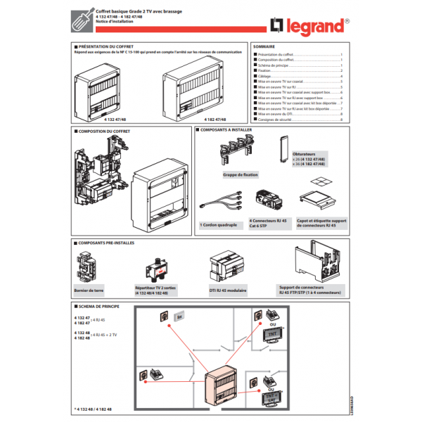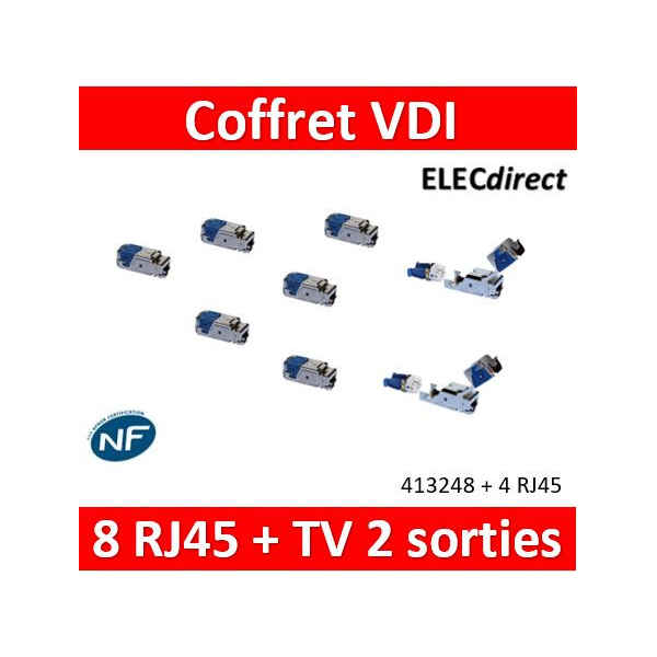Legrand - Coffret VDI GRADE 2 avec brassage STP - 8 RJ45 / TV 2 sorties - 413248 + 413183x4 + 413180