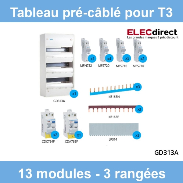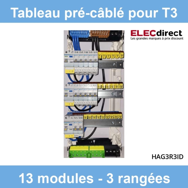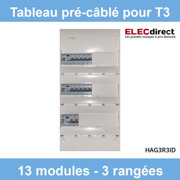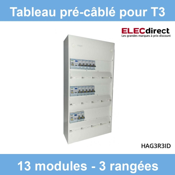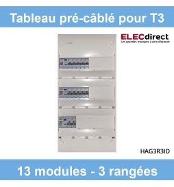 Hager- Tableau électrique pré-équipé et pré-câblé pour T3 - 13 modules - 3 Rangées - Réf : HAG3R3ID