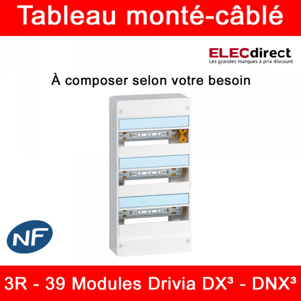 Legrand - Tableau monté-câblé : 3 rangées 39 modules - DX³ - DNX³ - à composer