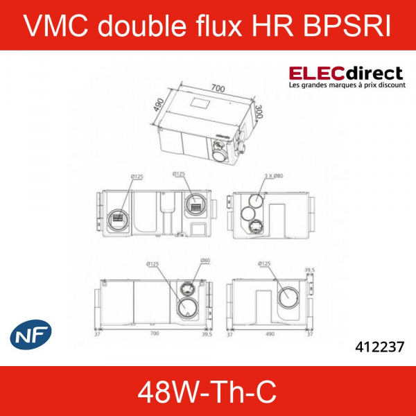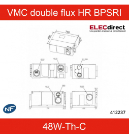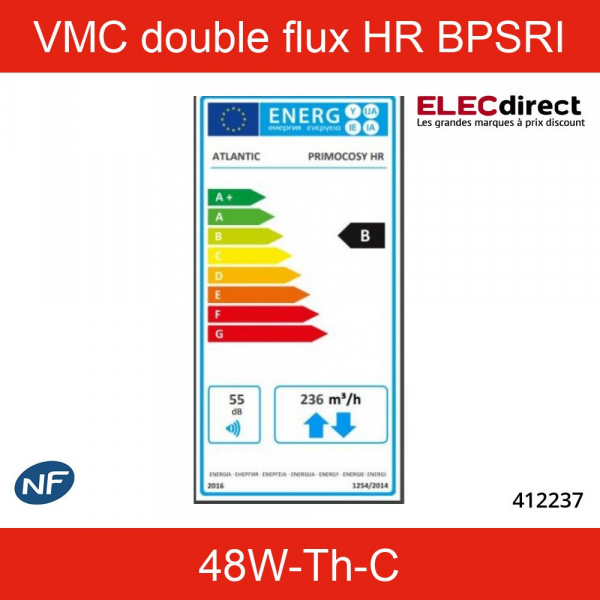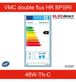 Atlantic - VMC double flux Primocosy HR BP SRI - 48W-Th-C - 55dB - By pass - Avec télécommande - Réf : 412237